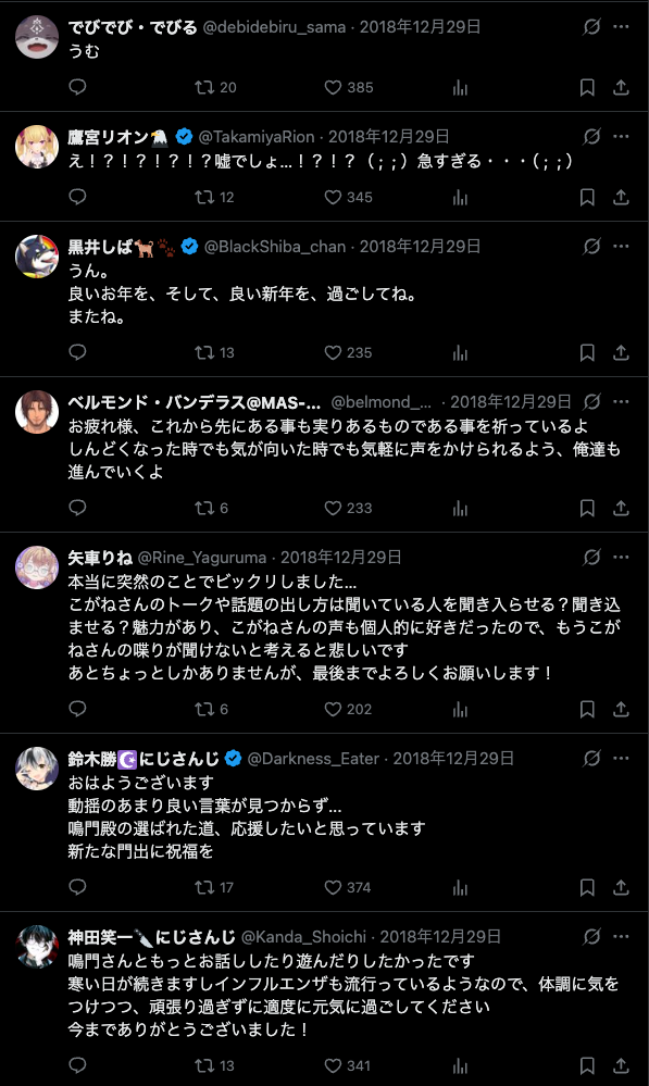 卒業報告のツイートには、多くのライバーからコメントが寄せられました。