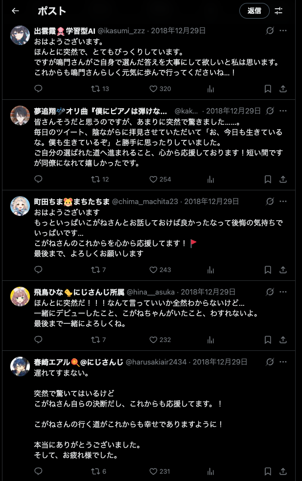 事前の予告なく突然の引退発表で、卒業配信やポストもなし。